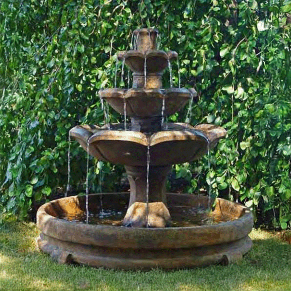 Garden Centerpiece: A Henri Studio tiered or statuary fountain makes an impressive centerpiece for any garden, adding height, depth, and elegance to the surrounding landscape.