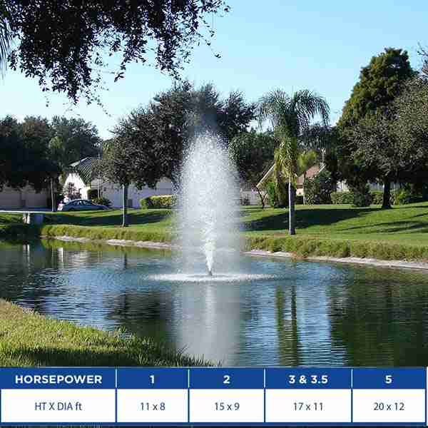 Powered by a robust submersible motor, the AquaMaster Eagle Lake Fountain produces consistent water movement that increases oxygen transfer throughout the water body. Improved circulation helps reduce algae growth, prevent stagnant conditions, and promote a healthier aquatic environment. Its classic vertical spray pattern offers excellent height and symmetry, making it ideal for properties seeking both functional water management and refined aesthetics.