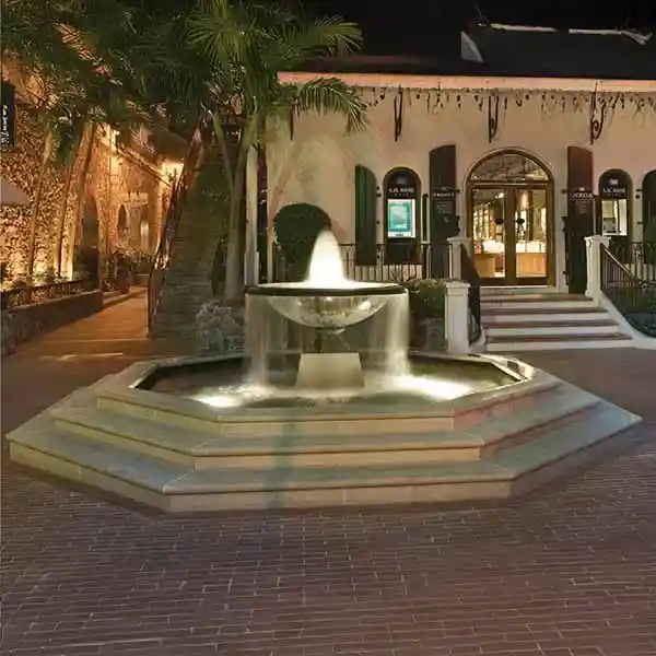 DMX lighting systems provide additional ways to enhance the visual impact of your fountain, especially at night. DMX (Digital Multiplex) is a protocol used to control stage lighting and effects, but it works just as well for architectural and outdoor fountains. Underwater submersible lighting fixtures, particularly those with color-changing DMX capabilities, are a game changer for making your fountain or water feature a stunning 24-hour-a-day centerpiece of your property. When paired with color-changing DMX LED lighting, your fountain can evolve into a completely different experience as the day transitions to night. In the evening, your lighting design can be programmed to shift colors or intensities, adding a layer of drama and elegance. This means your fountain is never static—it can transform its look with the change of time or occasion. Soft, warm hues can create a tranquil mood for quiet evenings, while vibrant colors can be used for special events or gatherings.
