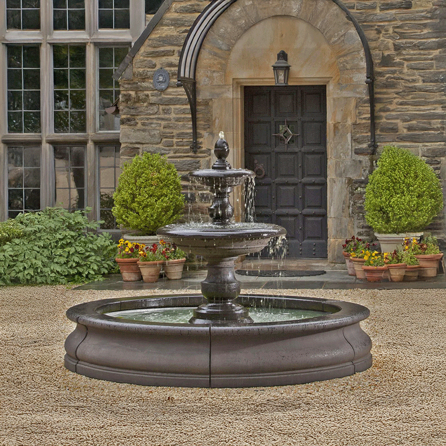 The Caterina Outdoor Fountain is a sight to behold. It’s is made from the finest cast stone Campania International has on offer. Moreover, the stone is fiber-reinforced to provide even more durability to this stunning fountain. The design features two tiers that create a cascading effect and a large pool basin for the water to gather.