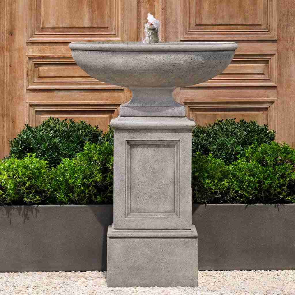 Handcrafted in the USA by skilled artisans, the Gramercy Fountain features a unique patina applied with expert care by the Campania team, ensuring that each piece is one-of-a-kind. The fountain is shown in the elegant Alpine Stone color. Campania International’s proprietary cast stone blend is meticulously molded to create each element of the fountain, giving it both beauty and durability. Due to the natural variations in materials and production processes, as well as differences in photography conditions, slight variations in size, weight, and color may occur. Please note that the actual color may differ from the photo.