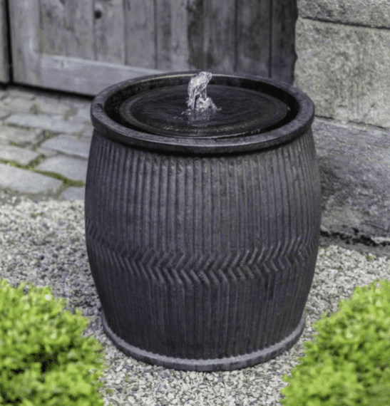 The Campania Rain Barrel Fountain-Bronze will bring your garden to life and to highlight its natural beauty. Designed and manufactured in the United States with high quality fiber reinforced cast stone concrete