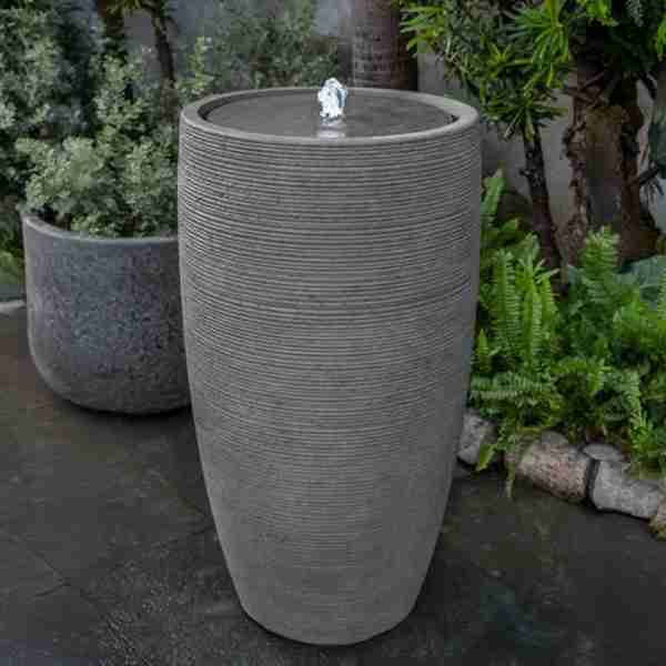 The Campania Sedona Fountain – Shown in Stone Ledge. This fountain will bring your garden to life and to highlight its natural beauty. Designed and manufactured in the United States with high quality fiber reinforced cast stone concrete