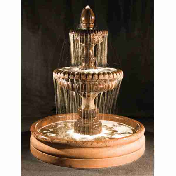 The Fiore two tier Pioggia fountain in 46″ basin produces a very full sounding fountain in a small footprint. Deep channeled groves on the bowl create a distinct visual pattern with dozens of individual areas of water spilling to the level below. Beautiful symmetry makes this a popular choice for discerning customers.
