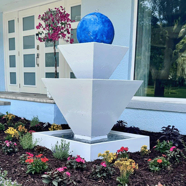 Sculptural, modern, and mesmerizing—the Gist Double Oblique Fountain with Ball (Model G-OBDF-B) is a stunning centerpiece that brings bold design and peaceful ambiance into perfect harmony. With its distinctive angular form and centrally perched sphere, this fountain offers a commanding visual presence and the gentle, soothing sounds of cascading water. Ideal for upscale gardens, formal courtyards, commercial plazas, or artfully designed entryways, the G-OBDF-B is a statement piece that merges contemporary architecture with elemental serenity.