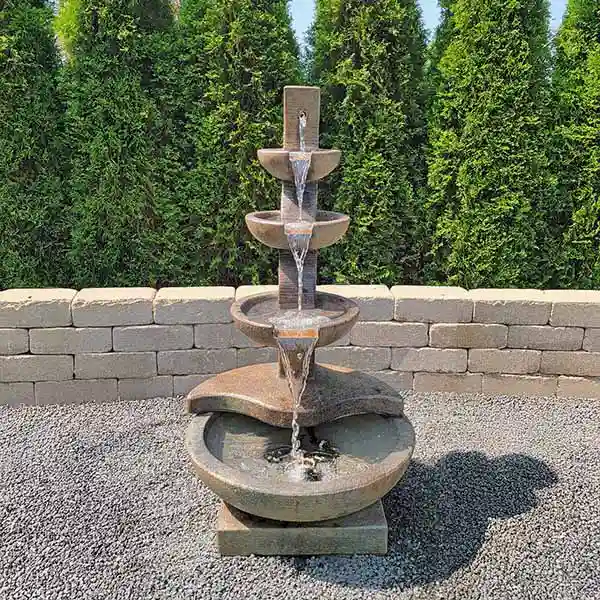 The Bolla Fountain features cascading waters that spill into progressively larger bowls, creating a stunning effect of floating, shimmering pools. An included underwater LED light kit enhances the beauty of the fountain, casting a radiant glow and adding a magical touch after dark.