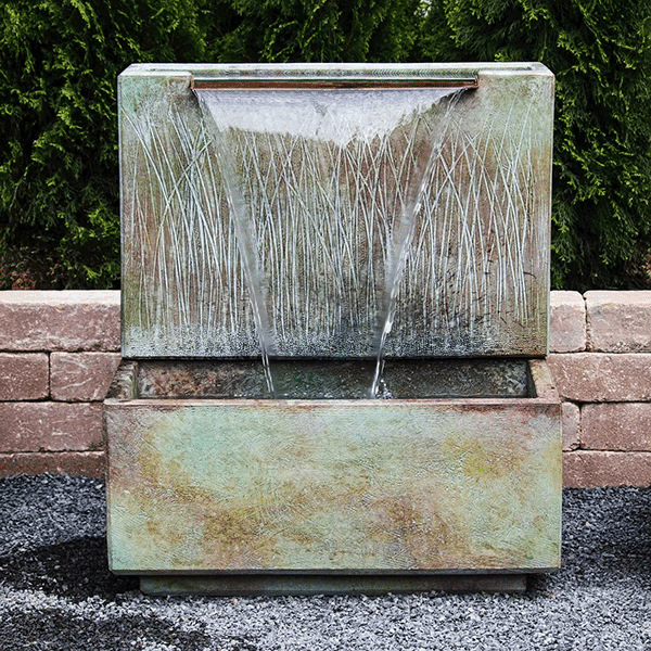 Windswept reeds are the focal point of the Summer Breeze Wall Fountain. The ultra-wide cascade of water brings to life the relief that graces its background. A brilliant underwater LED light kit is included to provide a shimmering night-time effect.