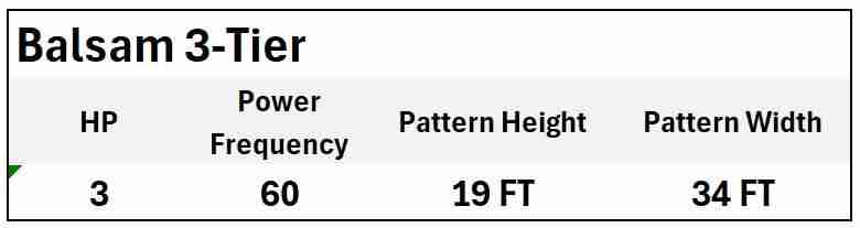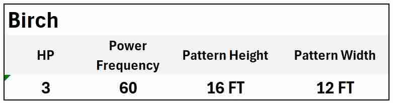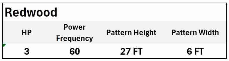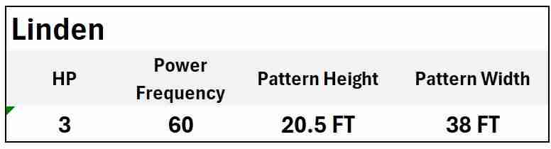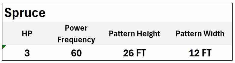 - Five nozzles are included. The patterns range from 9 to 18 ft high and 8 to 31 ft wide
