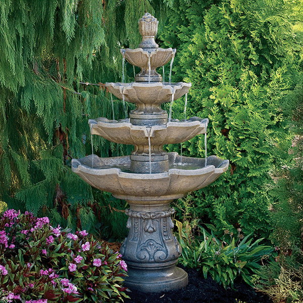 Finish Options: Available in a variety of hand-applied finishes to complement diverse outdoor décors. The fountain is often depicted in the Classic Iron finish.