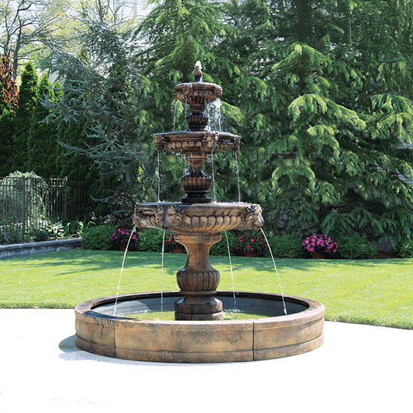 About the Massarelli Three Tier Grandessa Fountain with 8′ Pool