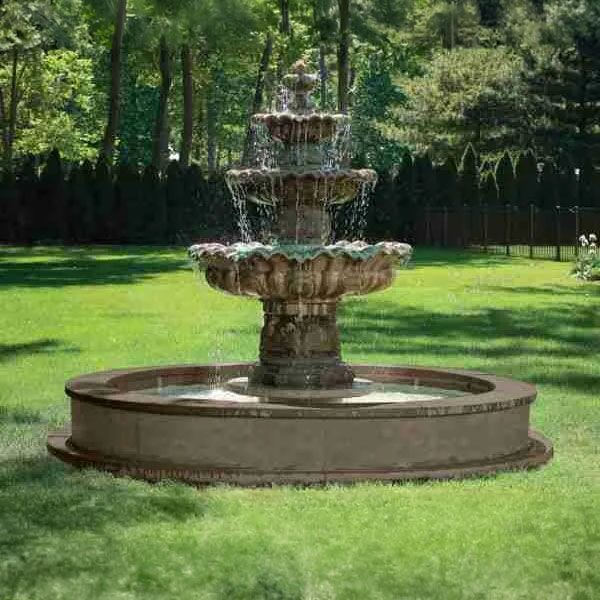 Graceful, grand, and timeless—the Massarelli Three Tier Scallop Fountain on 10′ Modular Pool, Model 3646, brings classic beauty and tranquil ambiance to any outdoor setting. With its elegant scalloped bowls and impressive scale, this fountain creates a luxurious focal point perfect for estate entrances, formal gardens, or circular driveways.