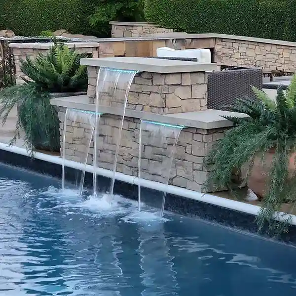 Finally, once the waterfall is securely installed and the plumbing is connected, test the feature to ensure it operates smoothly. Turn on the pool pump to check for proper water flow, and make adjustments to the flow rate if necessary. If the waterfall includes lighting, such as LED lights built into the feature, you can also test the lighting to enhance the visual appeal during nighttime swimming. Once everything is functioning correctly, finish the installation by covering any exposed plumbing or cables to maintain a clean, polished look. Regular maintenance will be necessary to keep the waterfall flowing smoothly and ensure the longevity of the feature, such as clearing debris and checking for wear and tear.