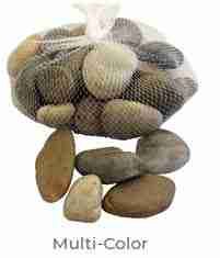 Each water feature comes standard with multi-color pebbles. Additional pebble option are available to match your décor and add a distinctive style to your waterfall or fountain. Most fountains use more than one bag to cover the pebble beach shelf.
